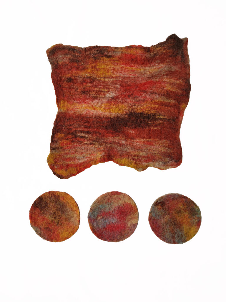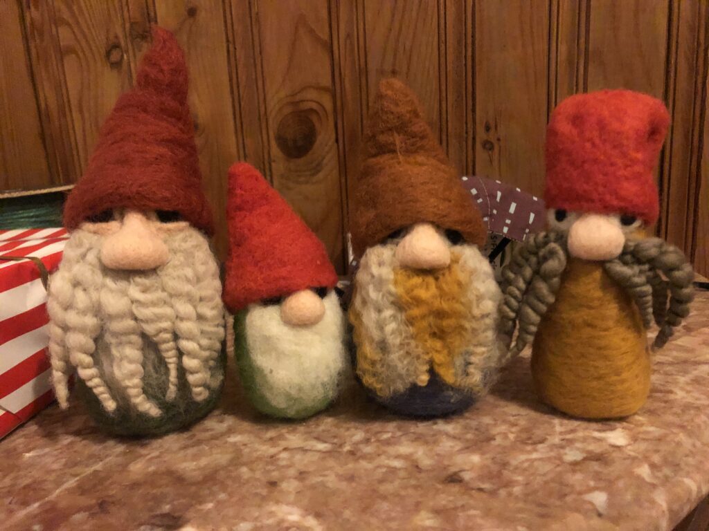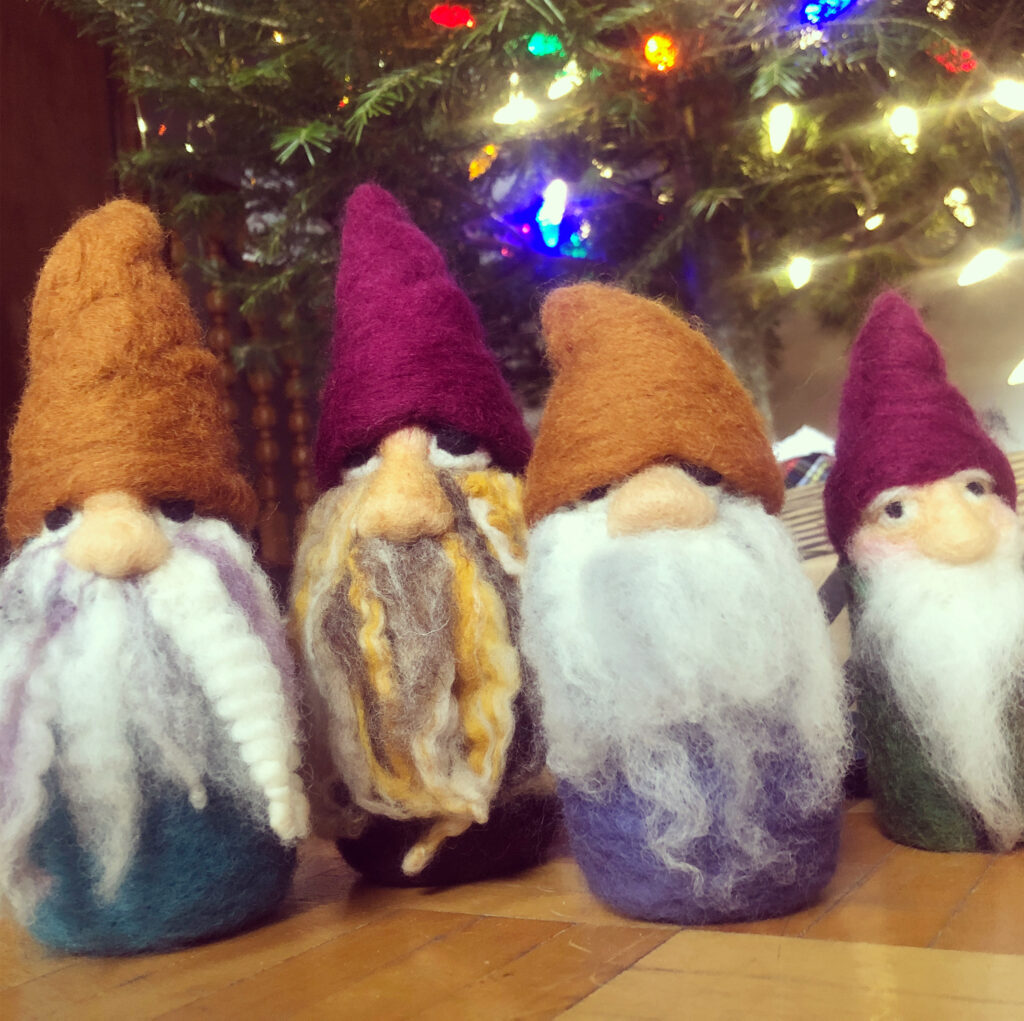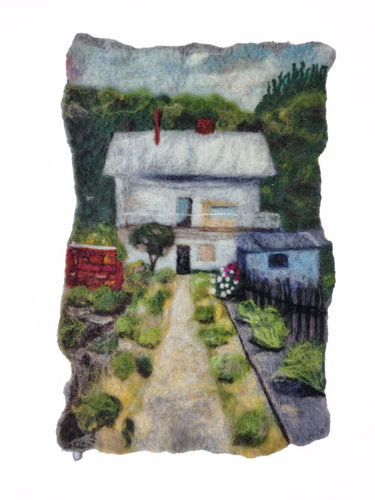 I create scenic paintings, figurines and accessories with wool using a mix of needle and wet felting techniques. Since I was a kid, I’ve had a passion for fibre arts—sewing, knitting, screen printing on fabric etc… I love discovering new processes and applying my craft in new ways such as, I dabble in costumes for dance performances and short film as well as fabric-based set pieces. A few years ago when I discovered felting, I became immediately hooked. It merges more classic visual arts–painting and sculpture with the tactileness of crafting.